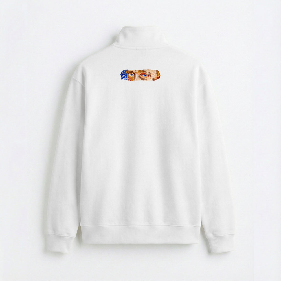 VAN GOGH GAZE EMBROIDERED QUARTER-ZIP SWEATSHIRT